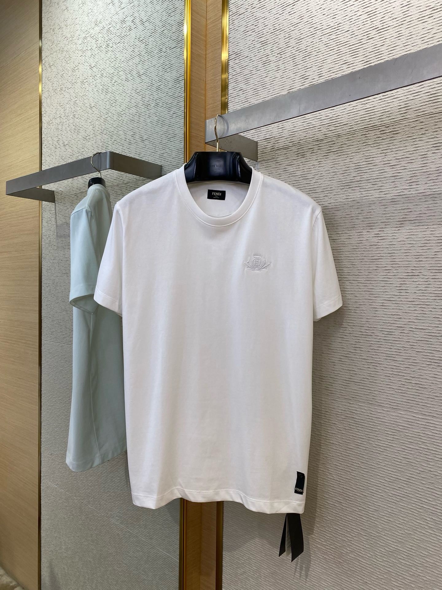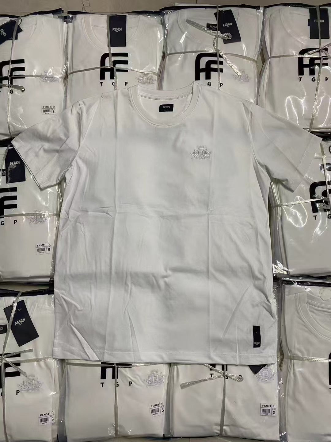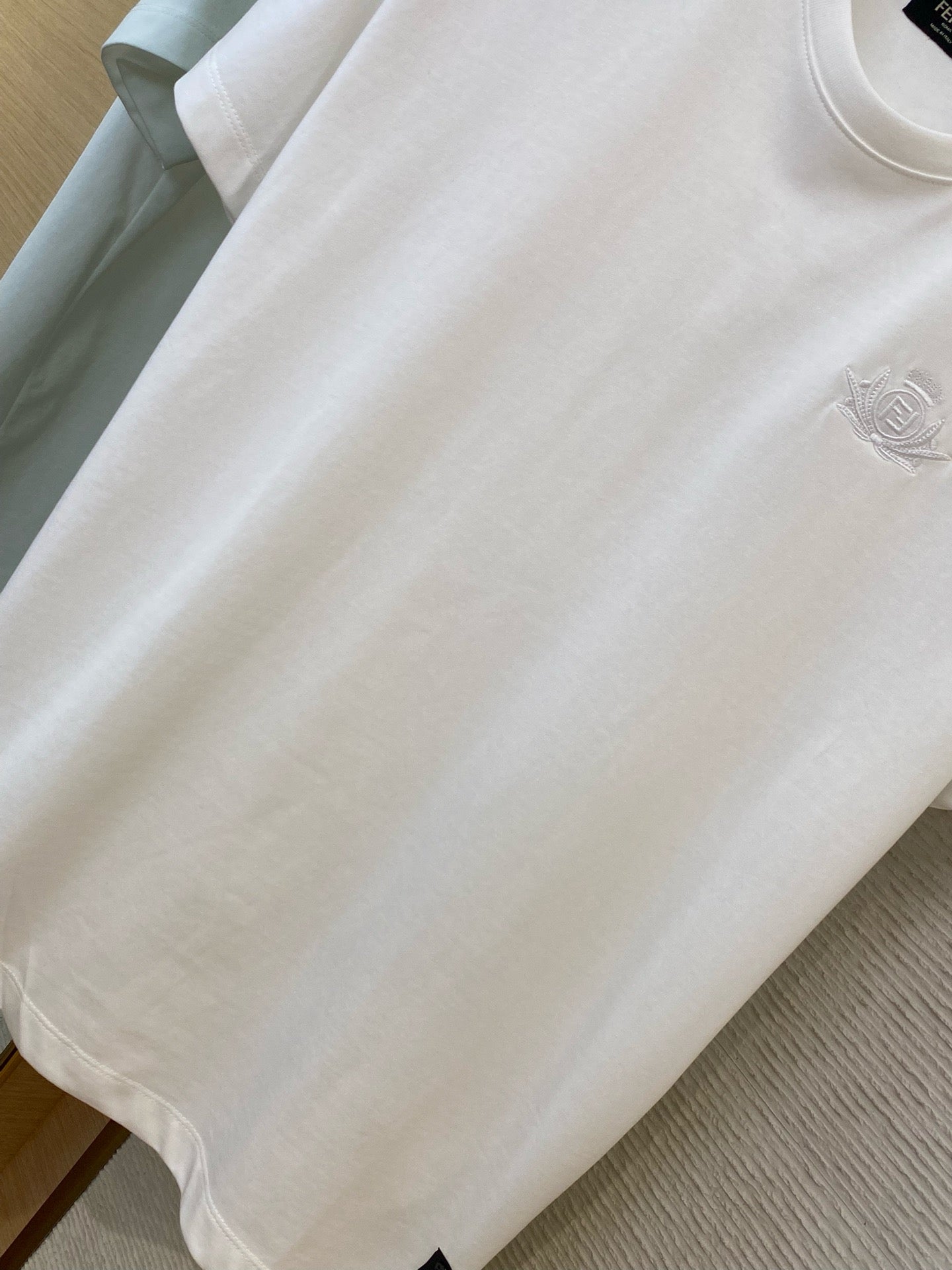 Entfesseln Sie Ihre verspielte Seite mit diesem blau-weißen Fendi T-Shirt. Es vereint Komfort und Stil und ist perfekt für jeden lässigen Anlass. Heben Sie sich von der Masse ab und setzen Sie ein Statement mit diesem einzigartigen und stylischen Stück. (Wortspiel-tastisch!)