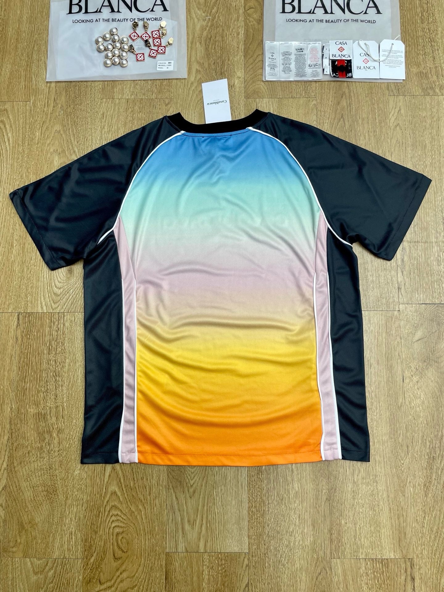 Das Casablanca Multi-Colors T-Shirt ist eine farbenfrohe und vielseitige Ergänzung für Ihre Garderobe. Hergestellt aus hochwertigen Materialien bietet es Komfort und Strapazierfähigkeit für den Alltag. Die dynamische Farbpalette lässt sich leicht mit verschiedenen Stilen kombinieren und macht es ideal für alle, die Stil und Funktionalität in ihrer Freizeitkleidung suchen. Perfekt, um Individualität auszudrücken und gleichzeitig einen eleganten Look zu bewahren.