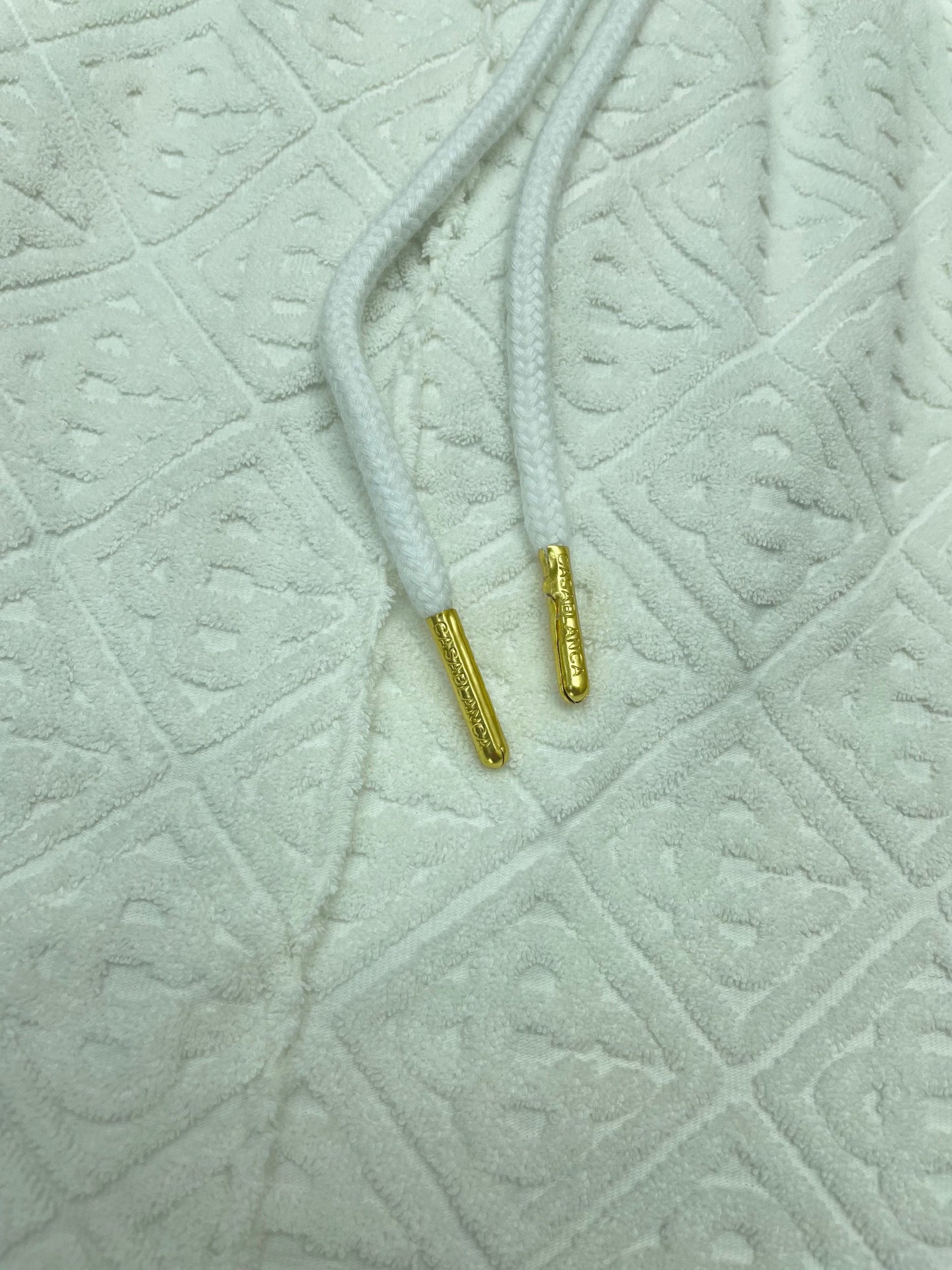 Peppen Sie Ihre Sommergarderobe mit diesen weißen Shorts von Casablanca auf. Perfekt für einen Tag am Strand oder einen Wochenendbrunch – diese Shorts sind stylisch und bequem zugleich. Zeigen Sie Ihre verspielte Seite mit dieser originellen und witzigen Ergänzung für Ihren Kleiderschrank. (Aber vergessen Sie nicht die Sonnencreme!)