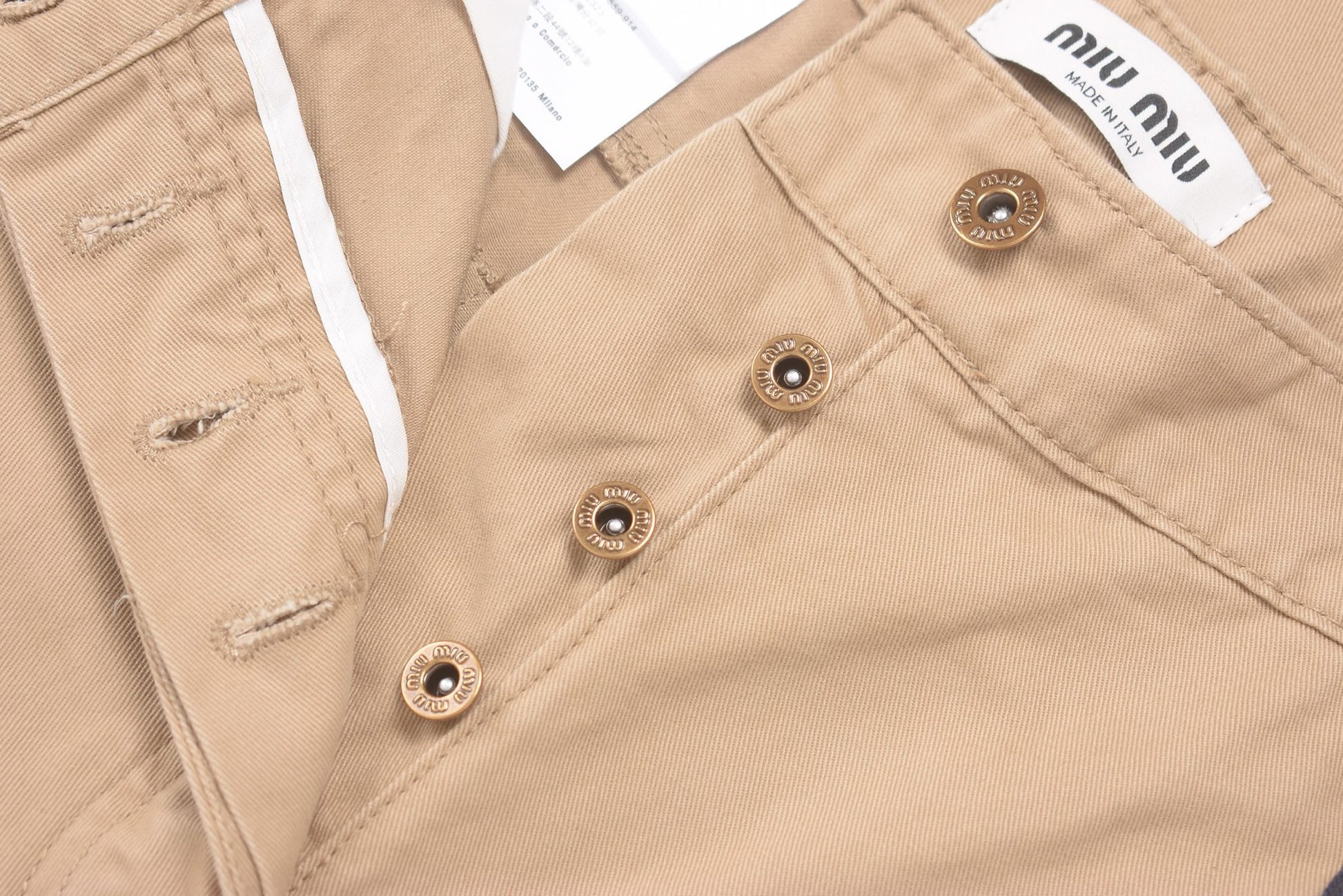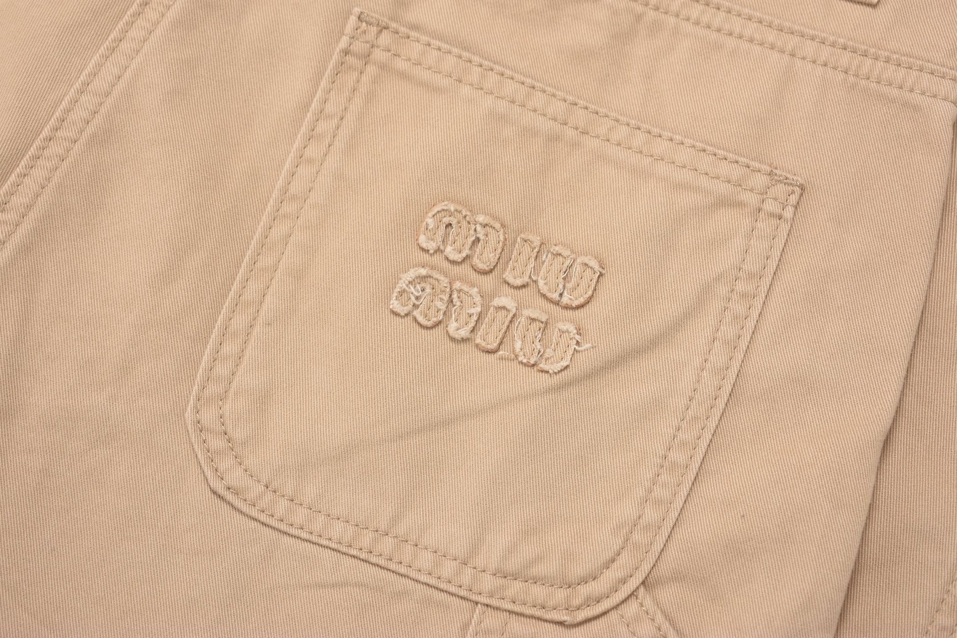 Step up your style game with these Miu Miu beige pants — your new go-to for effortless chic. The soft neutral tone pairs perfectly with anything, while the tailored cut hugs you in all the right places. Whether you're heading out for brunch or a night out, these pants bring a playful yet polished vibe to your look. Get ready to turn heads and feel fabulous!
