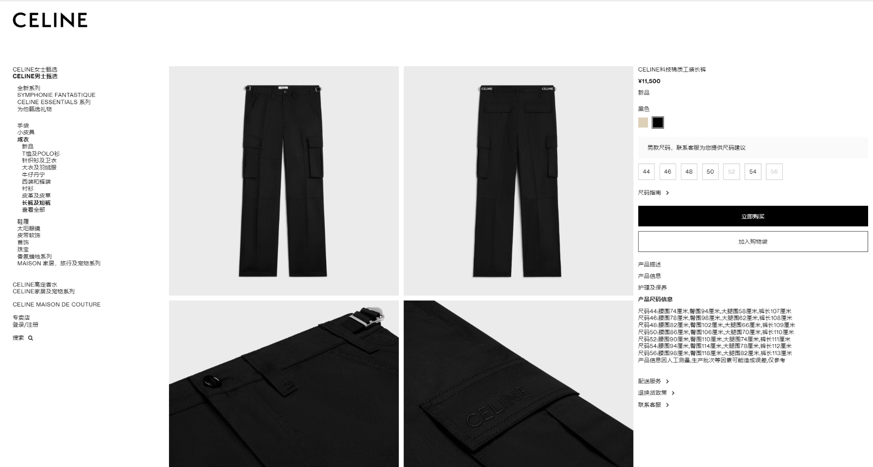 CELINE Official Pants Size Chart