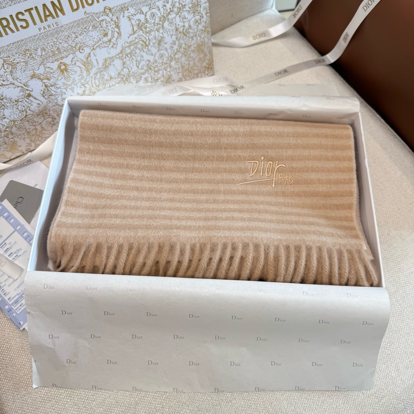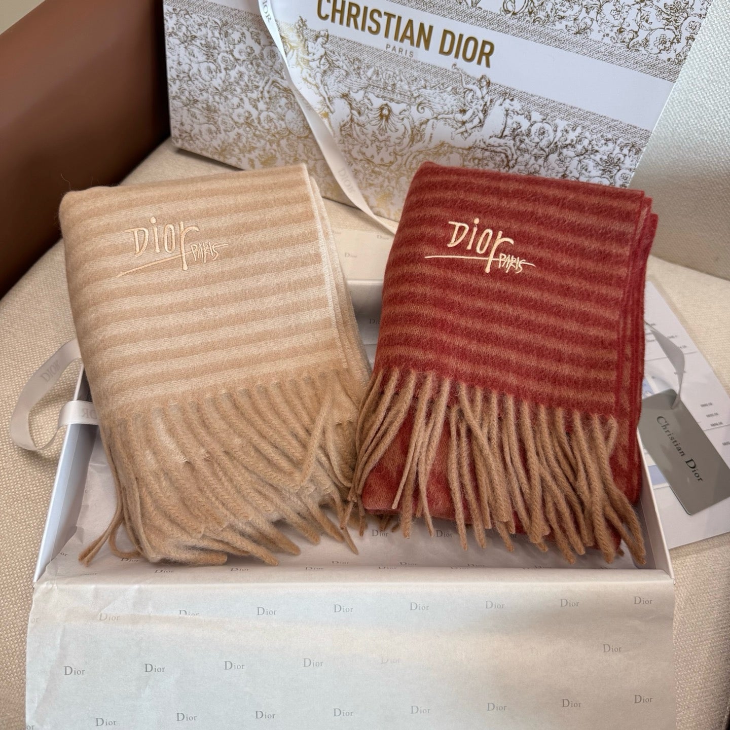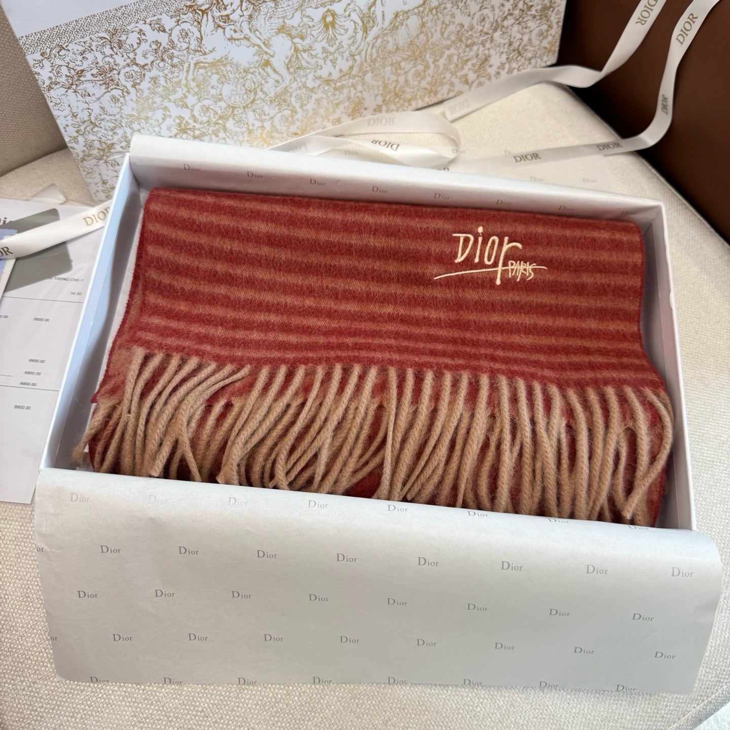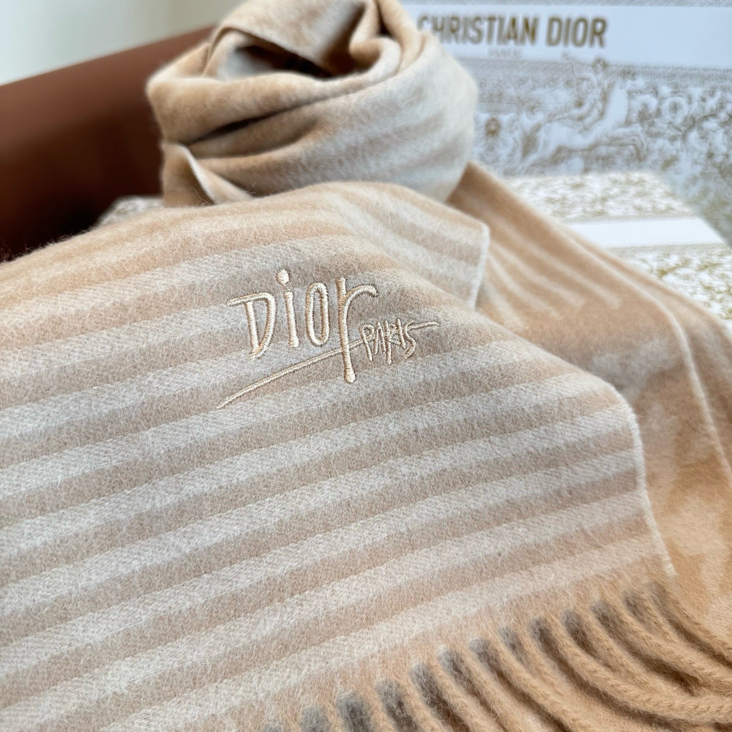 Wrap yourself in elegance with this Brown and Rose Scarf by Christian Dior. Its warm brown tones paired with soft rose highlights add a charming pop of color to any outfit. Lightweight and versatile, it’s perfect for cozying up or making a subtle fashion statement while twirling through your day with flair.