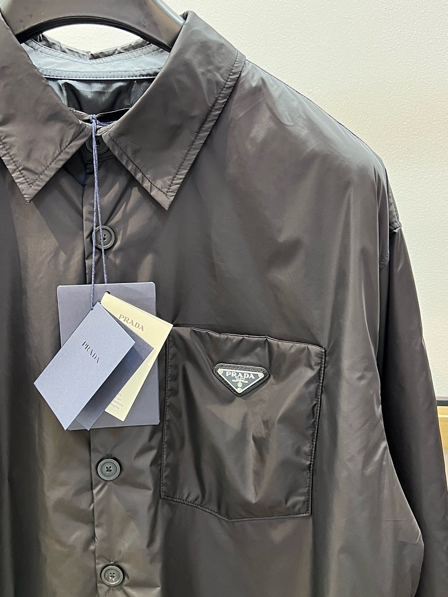 Step out in style with this sleek black jacket from Prada. Its timeless design pairs effortlessly with any outfit, adding a touch of cool sophistication to your look. Whether you're heading out for a casual day or a night on the town, this jacket keeps you comfy and looking sharp. Perfect for those who like to mix classic vibes with a dash of attitude!