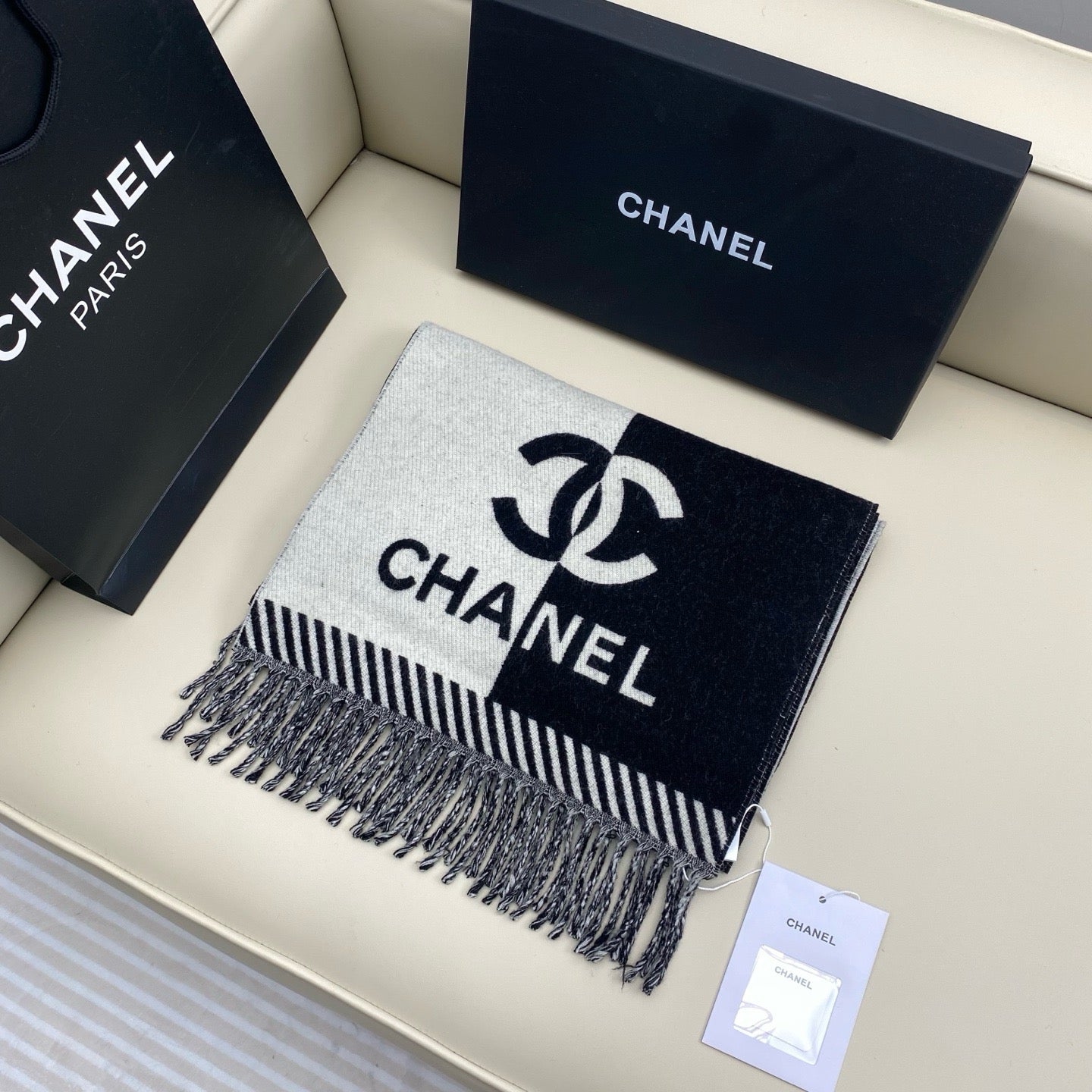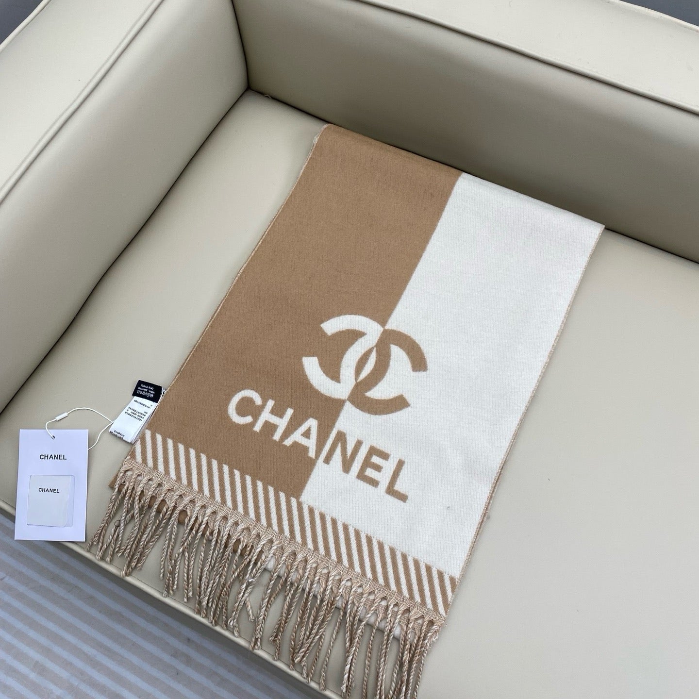 Add a splash of vibrant charm to any outfit with this playful Chanel Multi-Colors Scarf. Its lively blend of colors brings instant joy and stylish flair, perfect for brightening up your day. Wrap it around your neck, tie it in your hair, or knot it to your bag for a fun, chic twist that stands out wherever you go.
