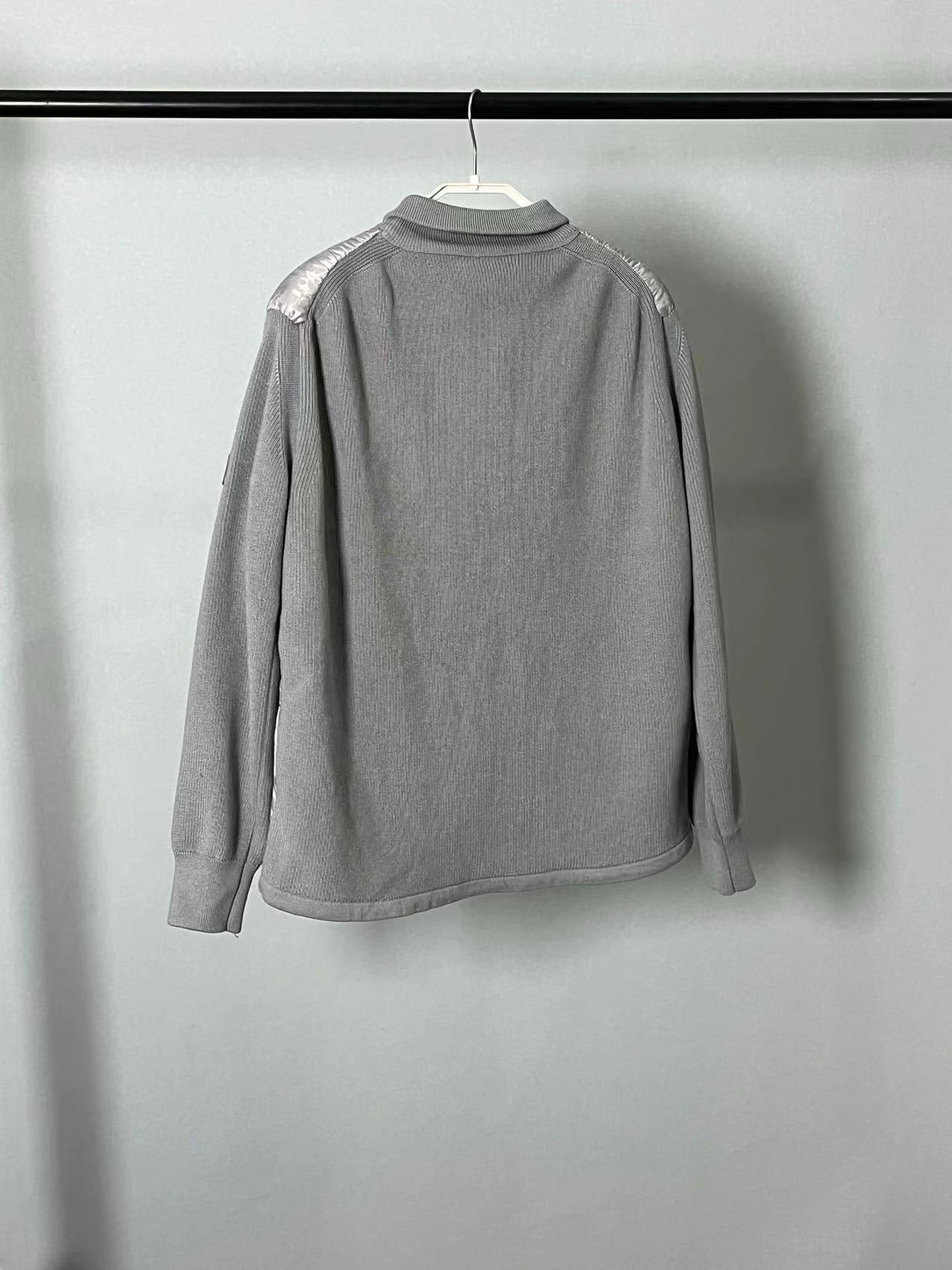 Chaqueta negra, gris, azul y blanca