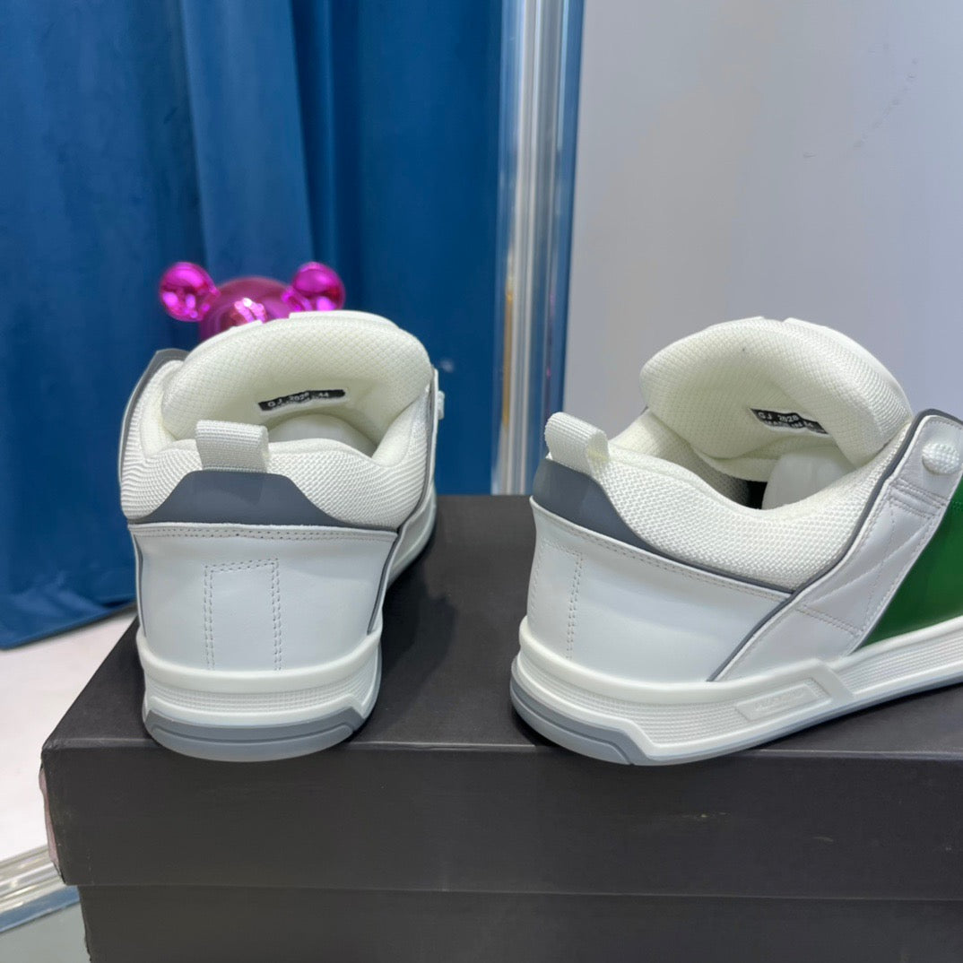 Zapatos blancos y negros, marrones y blancos, verdes y blancos, azules y blancos brillantes.