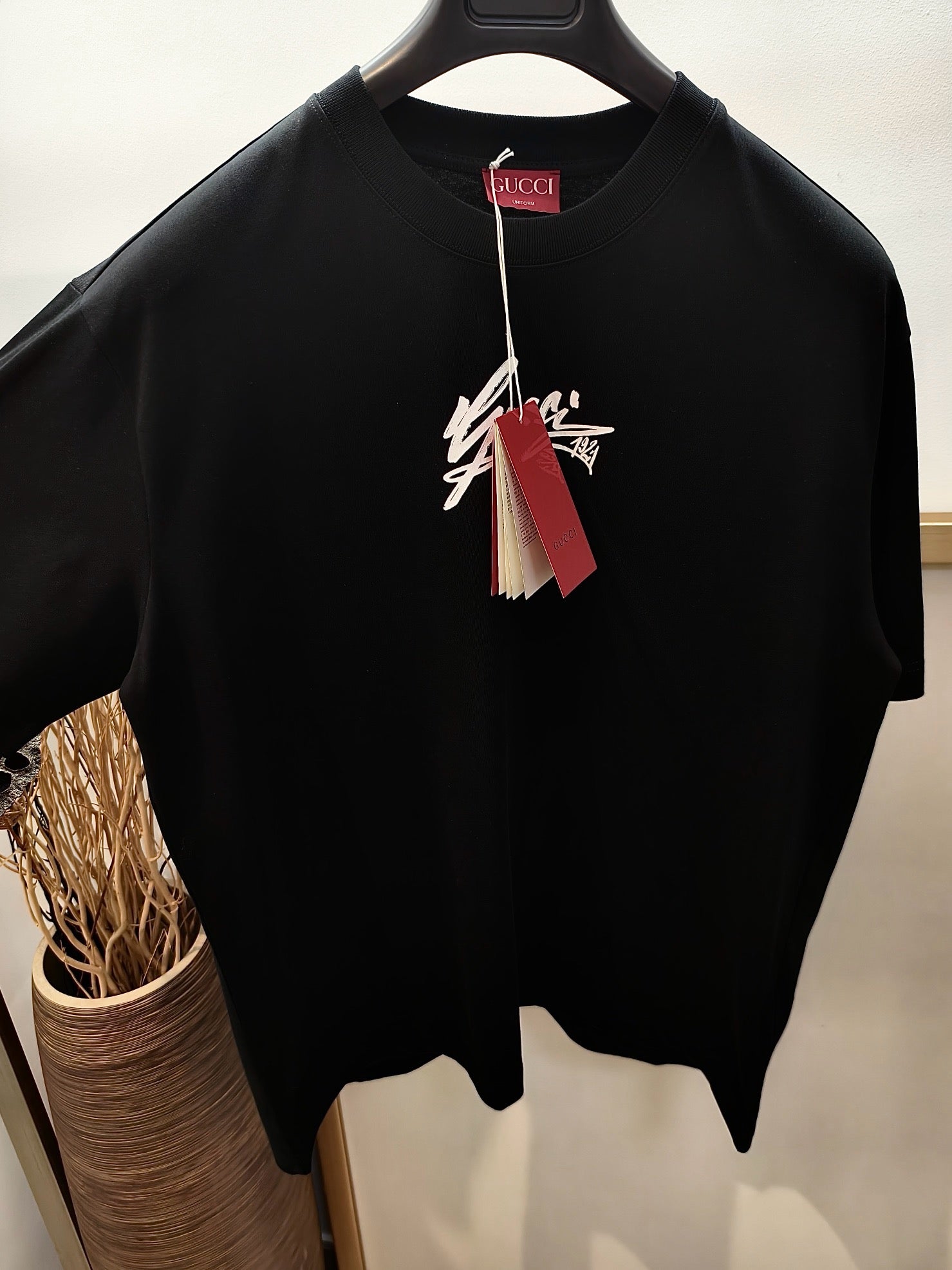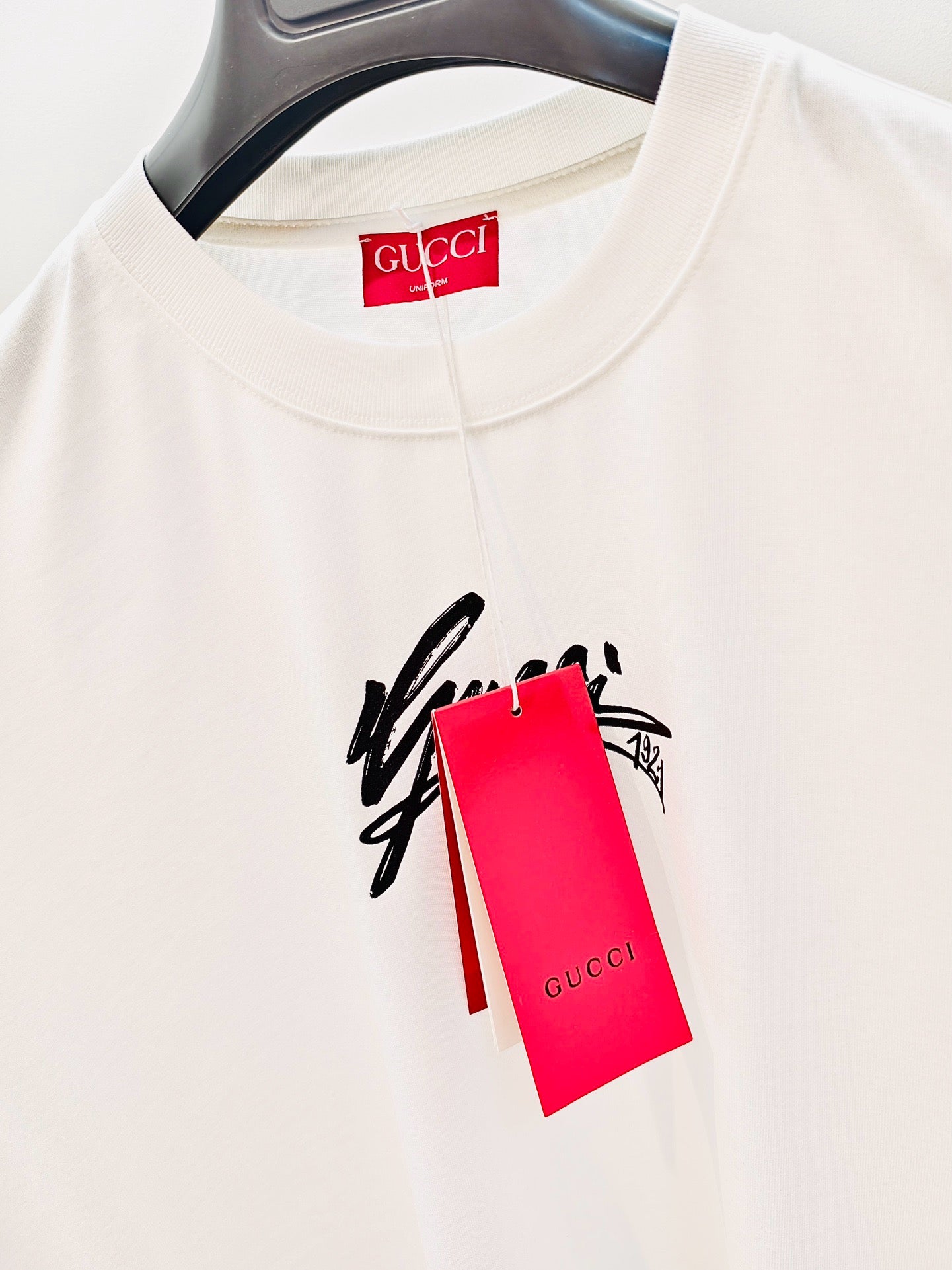 Elevate your casual vibe with this playful black and white tee from Gucci. Its classic monochrome design adds a fun twist to any outfit, making it perfect for days when you want to keep it cool but stylish. Soft, comfortable, and effortlessly chic—your new go-to shirt for turning heads without trying too hard.