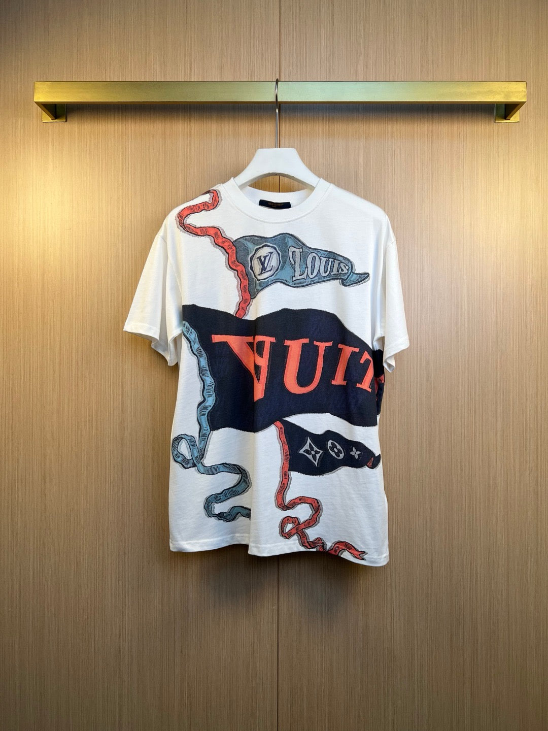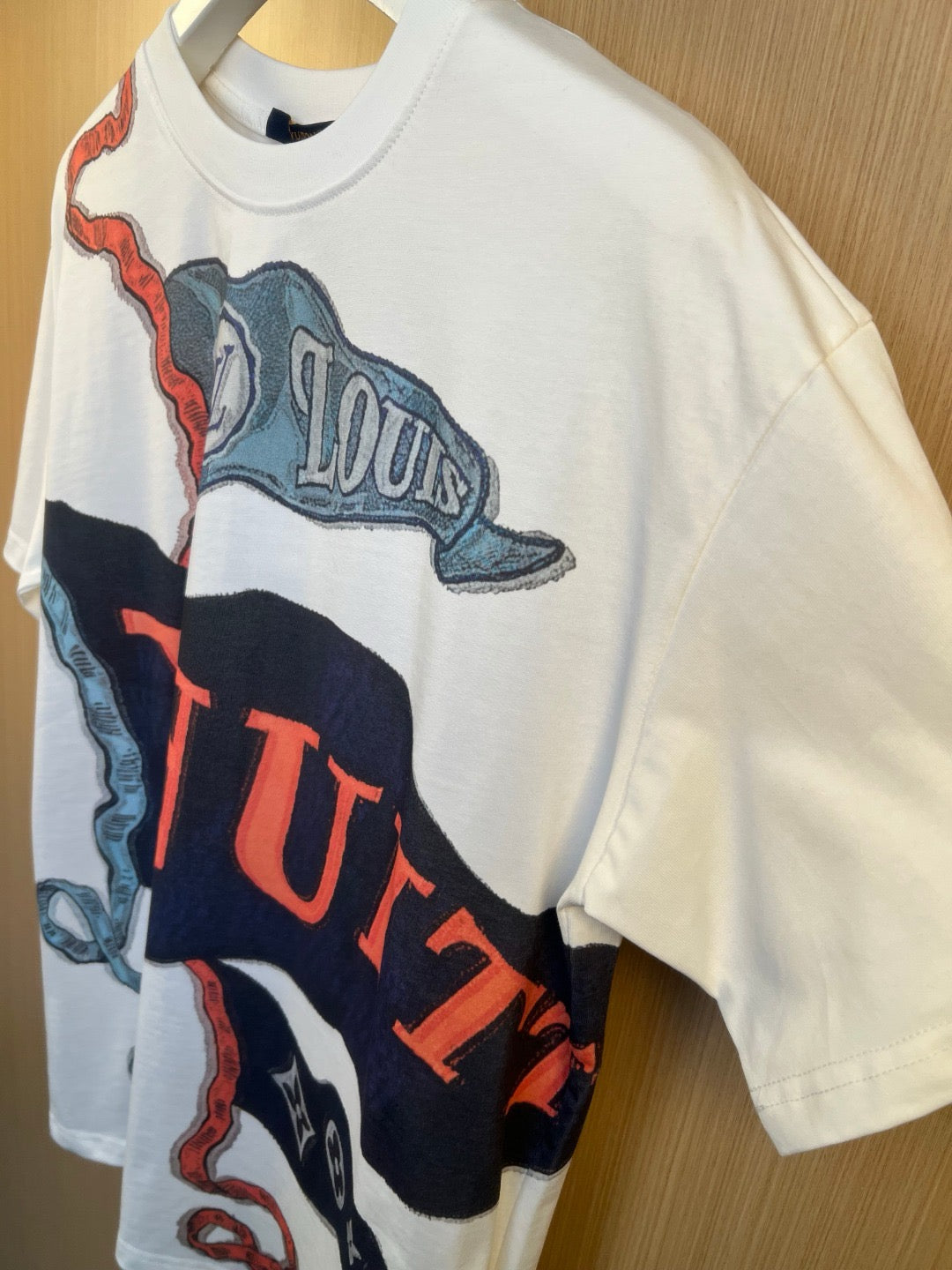 Step up your style game with this crisp white T-shirt from Louis Vuitton. Its clean, classic design pairs effortlessly with anything, while the premium fabric keeps you comfortable all day. Whether you’re out with friends or just chilling, this tee adds a fresh, playful touch to your look. Simple, stylish, and ready for your next adventure.